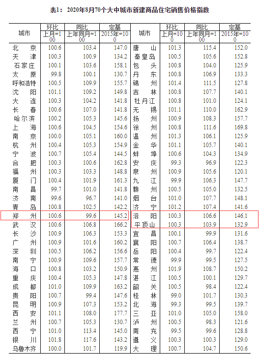 今日,国家统计局发布了2020年8月份70个大中城市商品住宅销售价格变动情况。