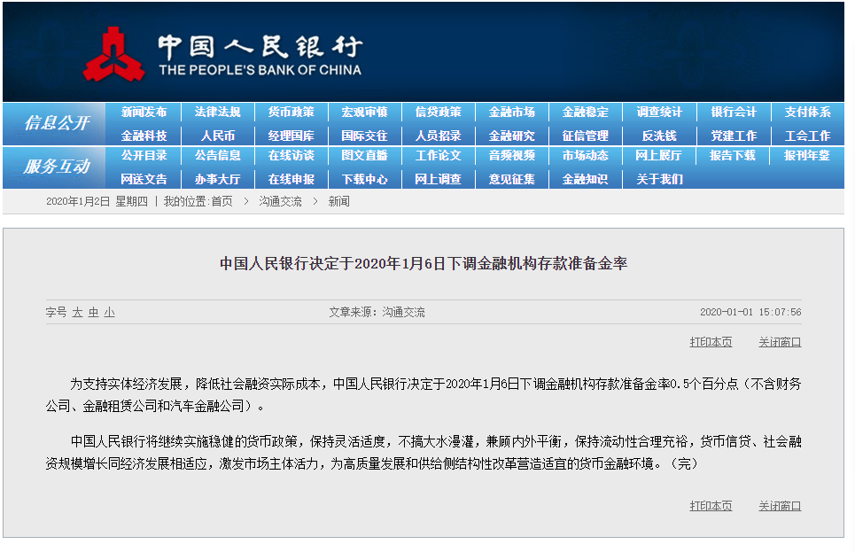 就在全国人民迎接21世纪20年代头一个新年的第一天,央行也送来的新年“礼物”,2020年第一次降准。