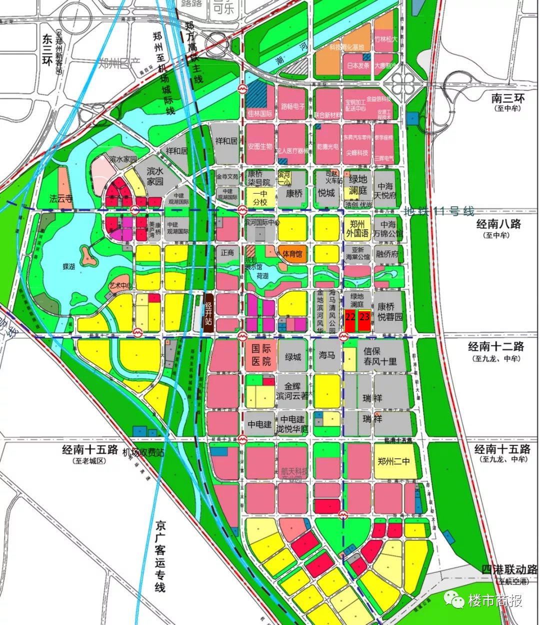 22号地与23号地挨着,在滨河国际新城核心区,都是改善盘,容积率>1.0、<2.5,位置也非常不错,北侧还有荷湖水系。