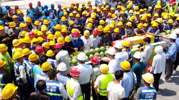 一份清凉,一份关怀。每一个甘甜可口的西瓜,每一份冰爽怡人的冷饮,不仅极大地鼓舞了一线工人们的士气,激发一线工人们的工作积极性,为工人师傅们撑起夏日里的一片绿荫,也为项目的工程进度赋予了有效的后勤保障。