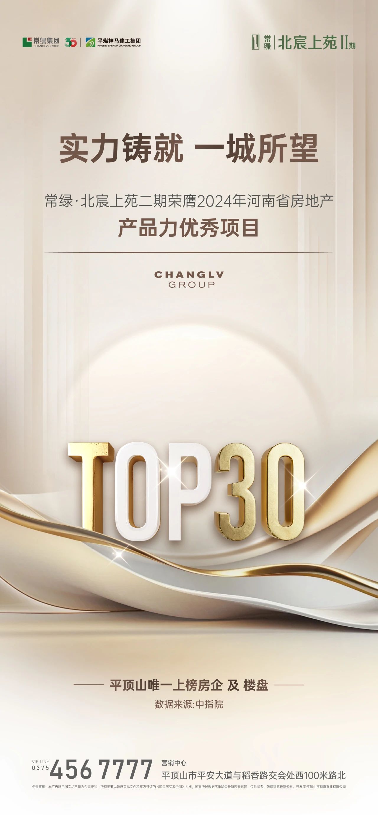 产品上,郑州常绿・金水宸苑、平顶山常绿・北宸上苑、洛阳常绿・林溪宸院三个匠心独运的项目成功入选 “2024 年河南省房地产产品力优秀项目 TOP30”,以卓越的品质、创新的设计和贴心的服务,成为区域产品标杆;其中,平顶山常绿・林溪宸苑项目更是脱颖而出,入选 2024 年河南省标杆价值楼盘,为城市人居生活注入全新活力。