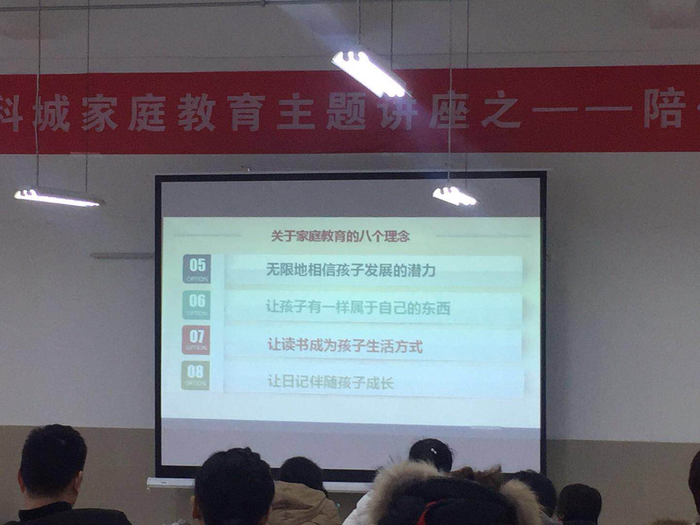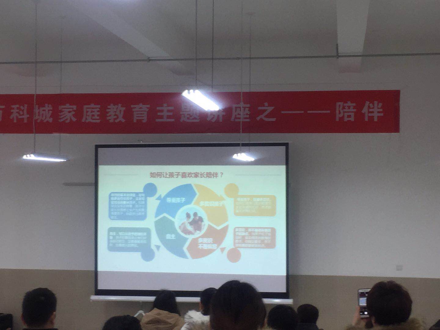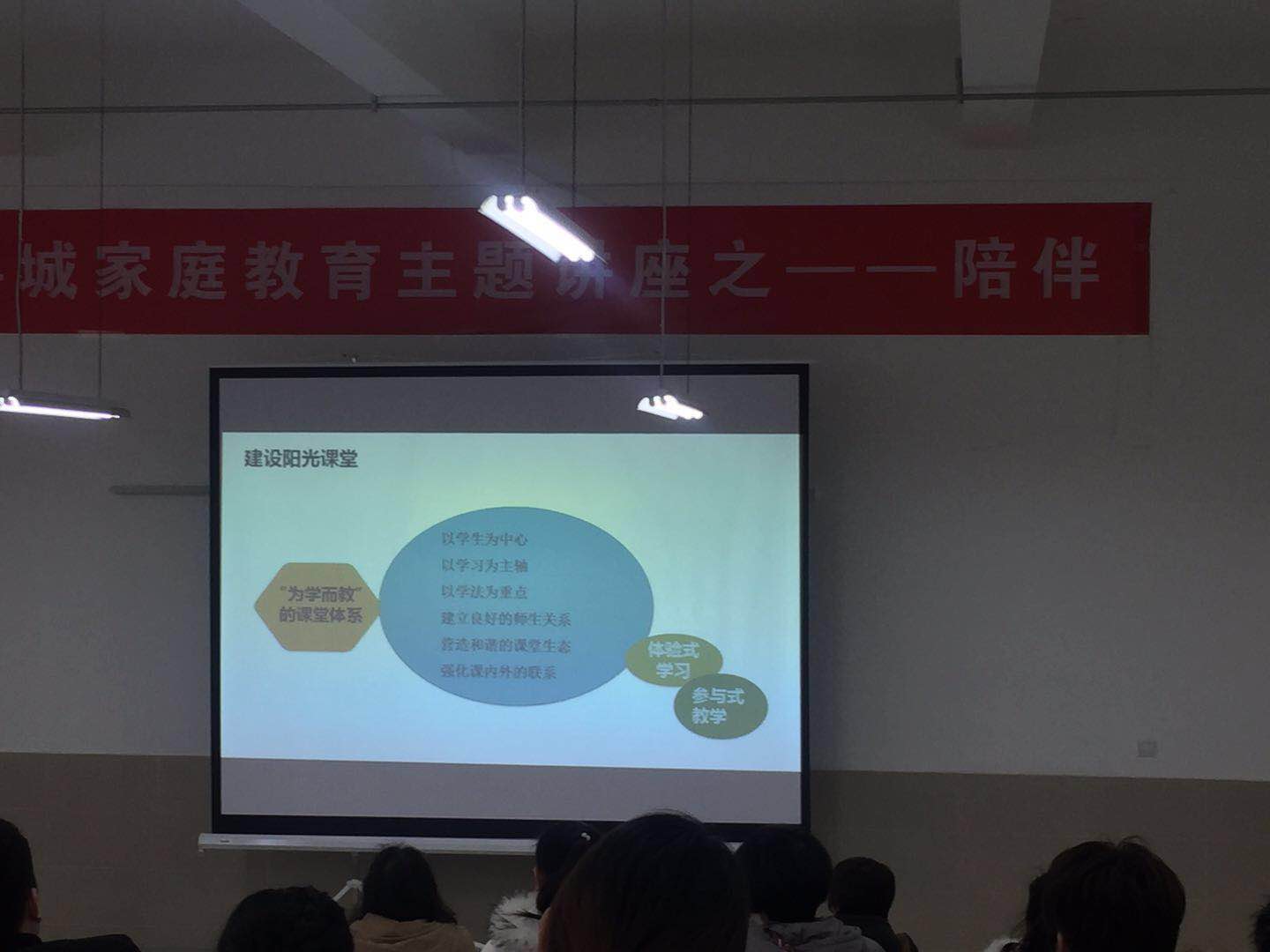 本次讲座即将接近尾声,校长再次强调本次讲座的主题—陪伴是最好的教育。