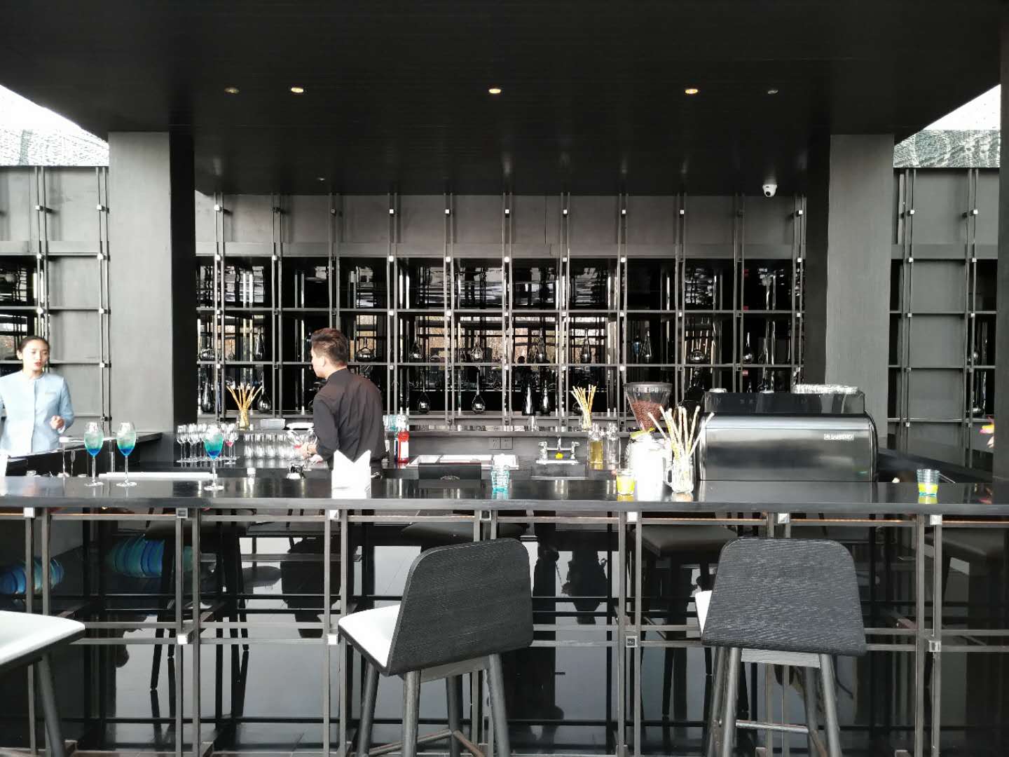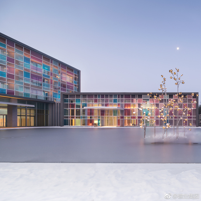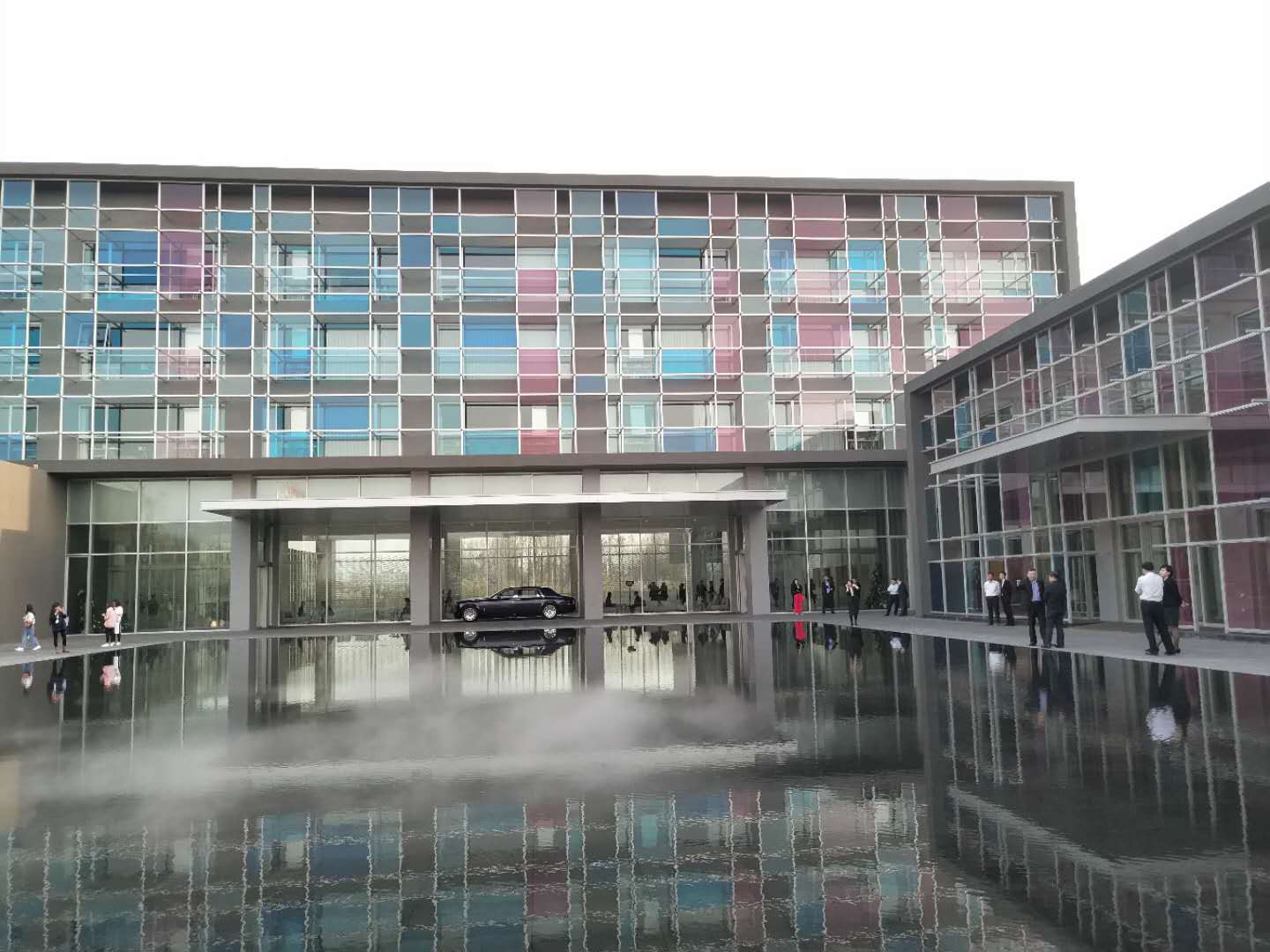 一下车,就被眼前的开阔的视野,和极富艺术感的建筑吸引。酒店主体由四座玲珑通透的全玻璃外墙建筑组成,远看错落层叠,近看无数块拼接整齐划一的彩色玻璃迷幻了凝视者的视线。