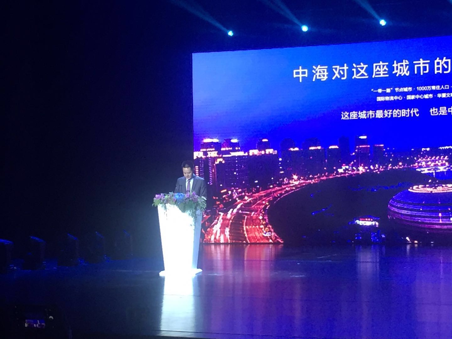 中海河南分公司总经理陈总发表致辞,讲述中海地产在郑州的布局。